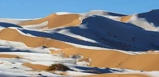 صحراء بيضاء يكسو رمالها الثلج، وجمال ونوق تسير فوق حبات البرد، وسحابة محملة بشحنات كهربائية هائلة، باتت تلك المشاهد الغير…